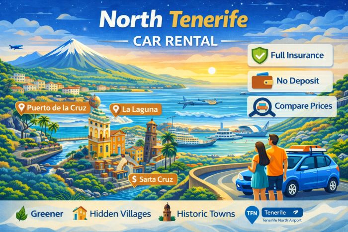Most travelers arrive via Tenerife North Airport and use a rental car to explore coastal resorts, mountain villages, and cultural cities at their own pace.
